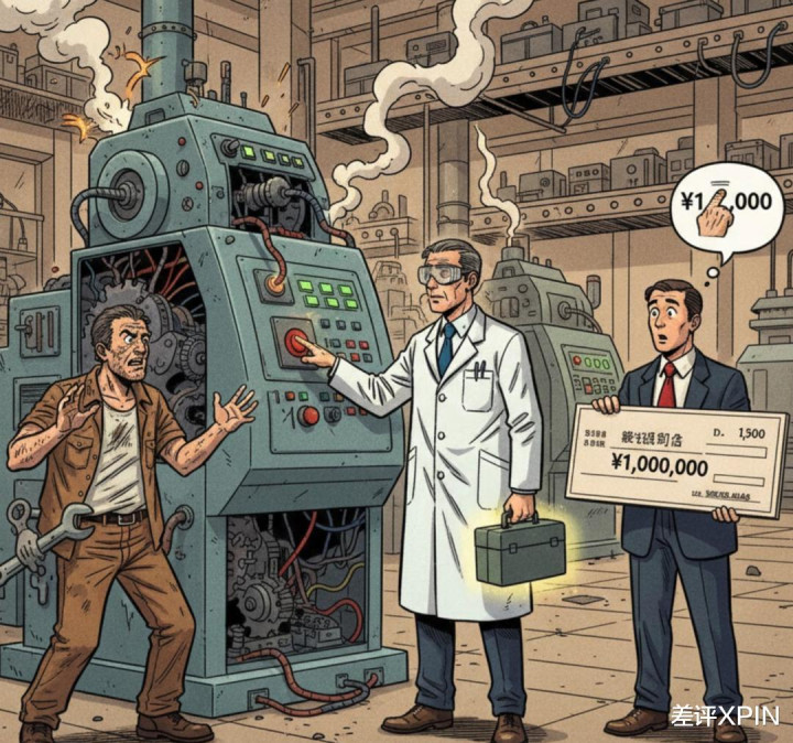 而且,故事里专家面对的是企业——设备停工一天损失百万,救急收 100 万是市场定价;而今天维修师傅面对的是普通消费者,操作一下收 2000 块那叫趁火打劫。