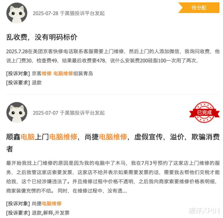 黑猫投诉上,跟电脑维修相关的投诉超过 3000 条,其中很多都是因为乱收费。
