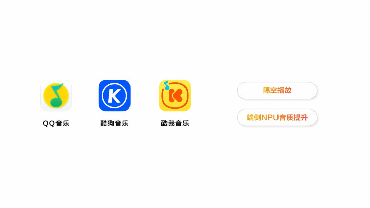 腾讯系音乐应用:隔空播放、投播体验革新,音质全面升级。QQ音乐、酷狗音乐、酷我音乐将分别带来隔空播放、端侧NPU音质提升等新体验;