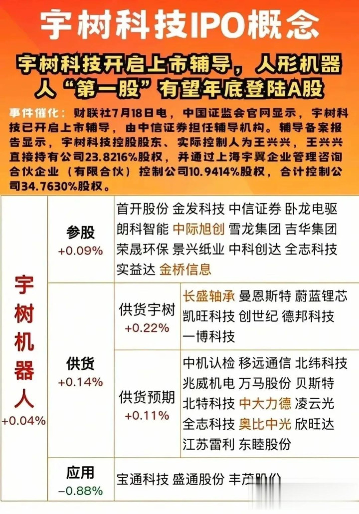 宇树科技已完成科创板上市辅导,计划于本月提交IPO申请文件,若审核顺利,预计2026年上半年挂牌上市。宇树科技上市最受益公司有卧龙电驱、金发科技等等